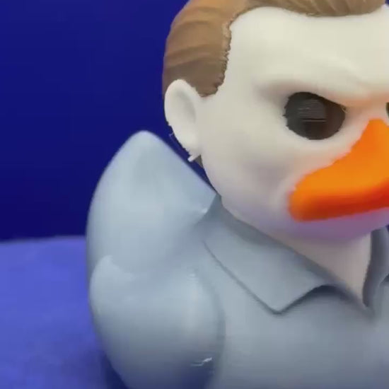 Meet the Michael Myers Duck — a terrifyingly cute twist on the slasher classic! This 3D-printed collectible transforms the silent killer from Halloween into an adorably menacing duck, complete with his signature emotionless stare and iconic blue coveralls.