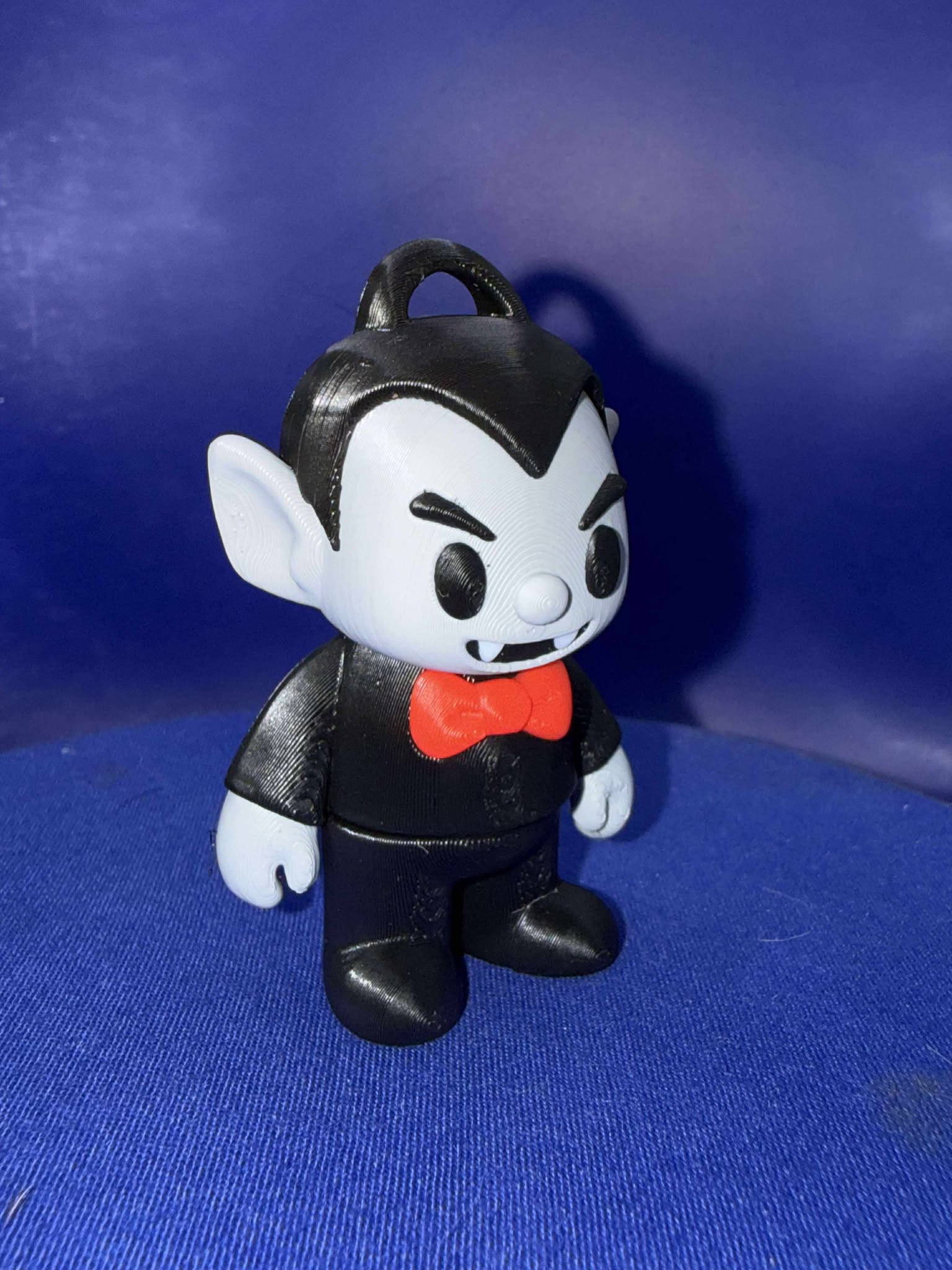 Sink your teeth into spooky season with this Vampire Flexi Figure! This adorable yet eerie 3D printed character captures the classic vampire look — pale skin, slicked-back hair, pointy ears, fangs, and a bright red bow tie — making it a perfect collectible for Halloween fans or monster lovers.