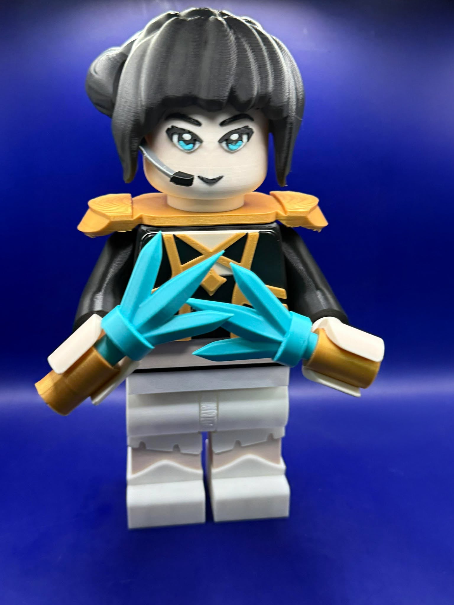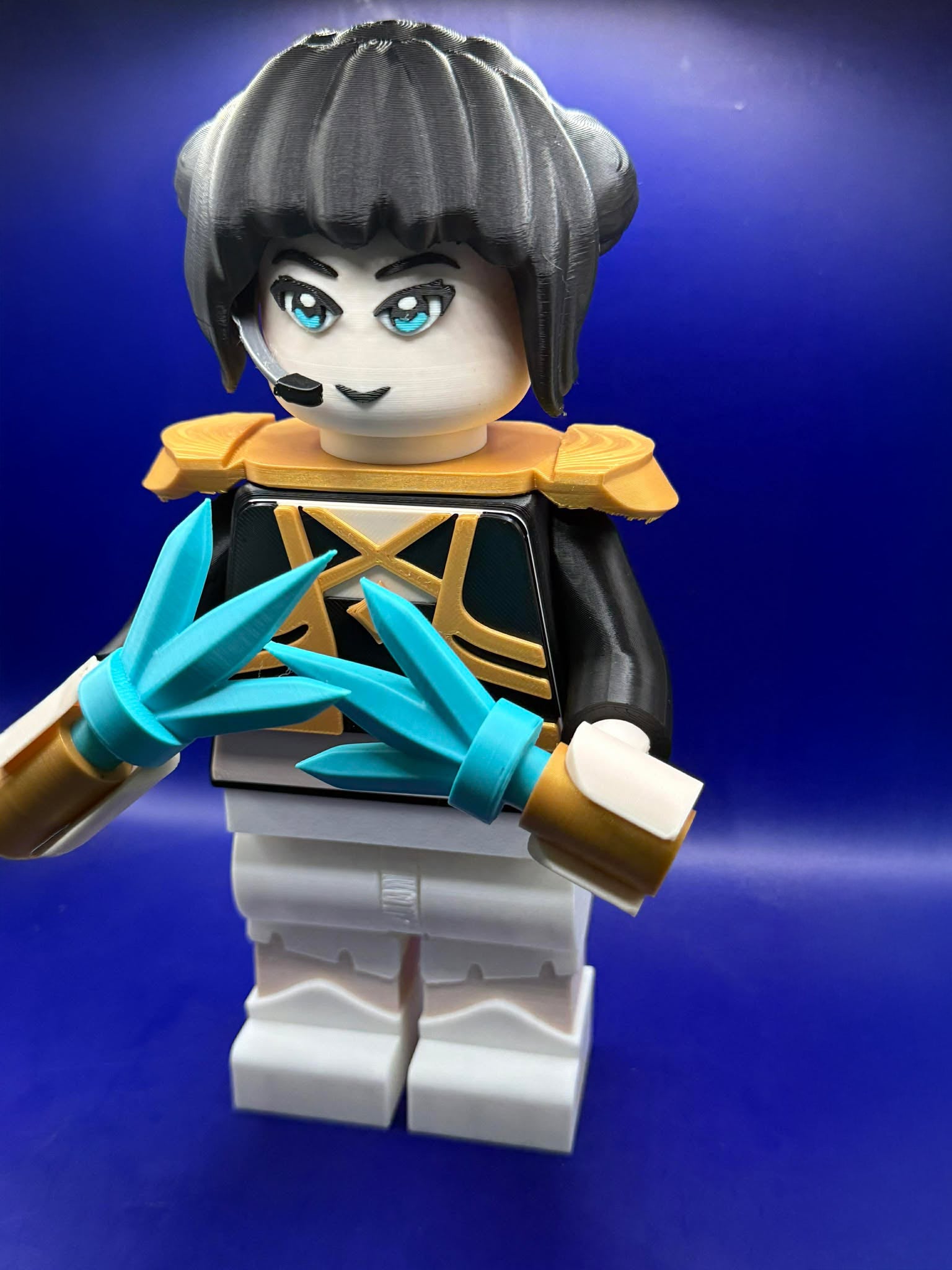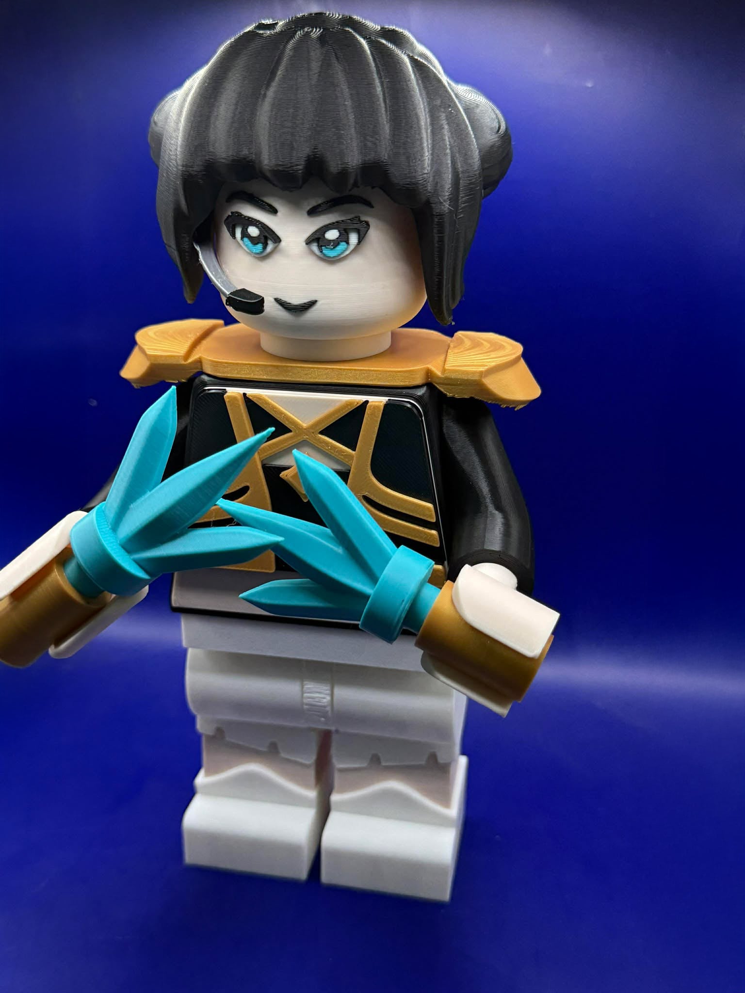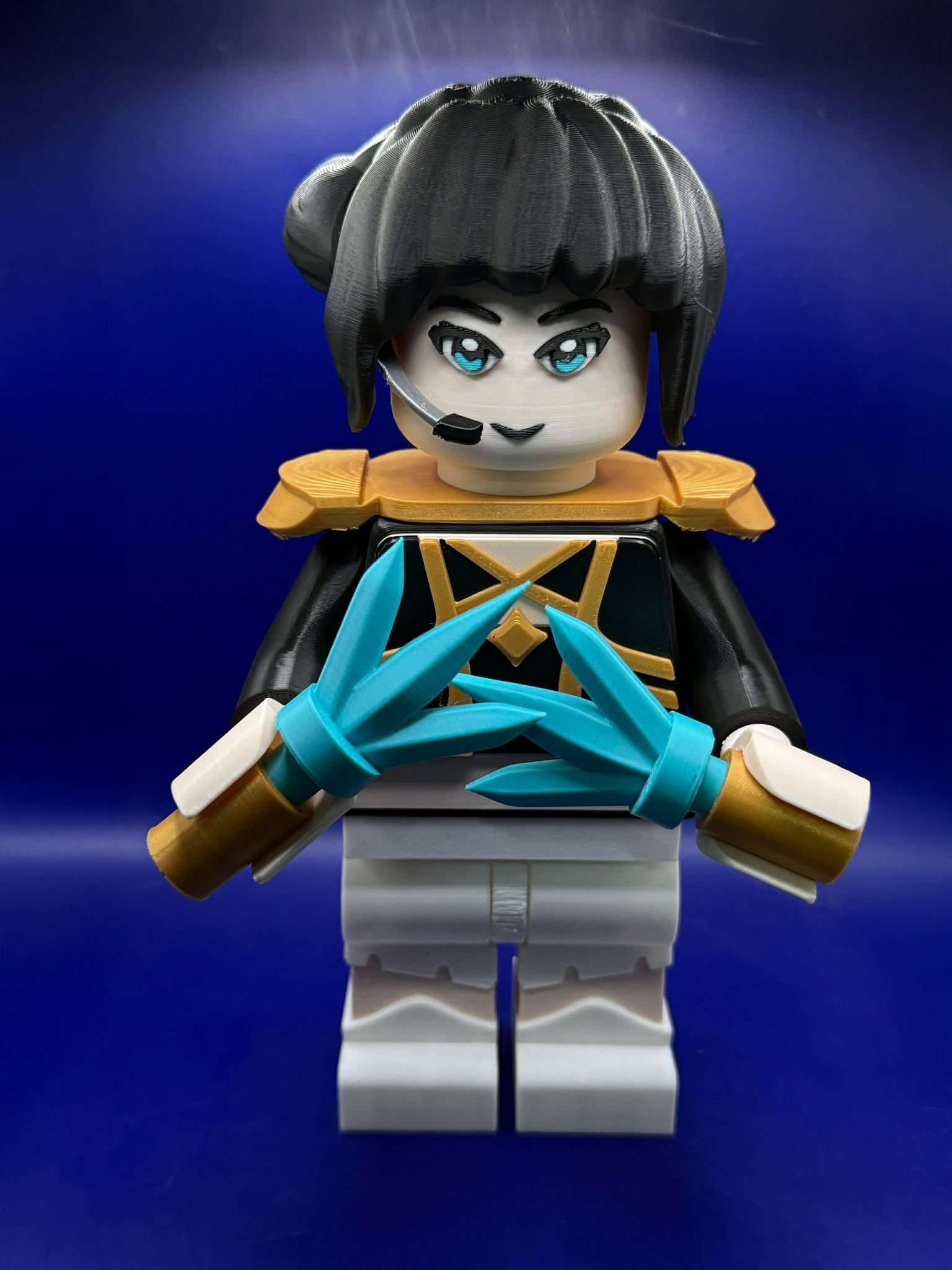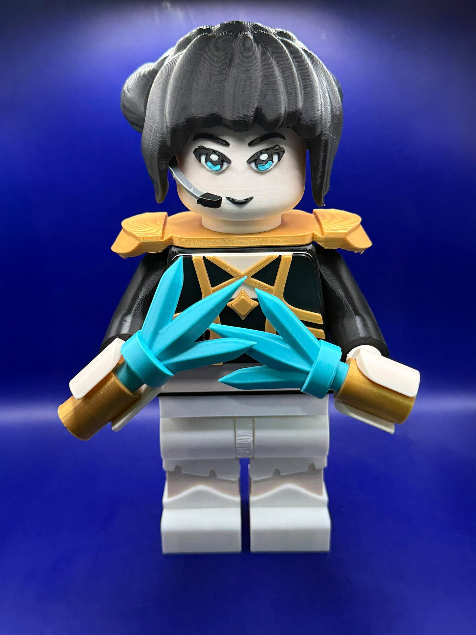 ⚔️ Comes equipped with her dual teal energy blades, detailed with gold and white handles